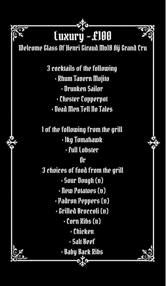 • On confirmation of booking, 50% deposit of the minimum spend will be retained.